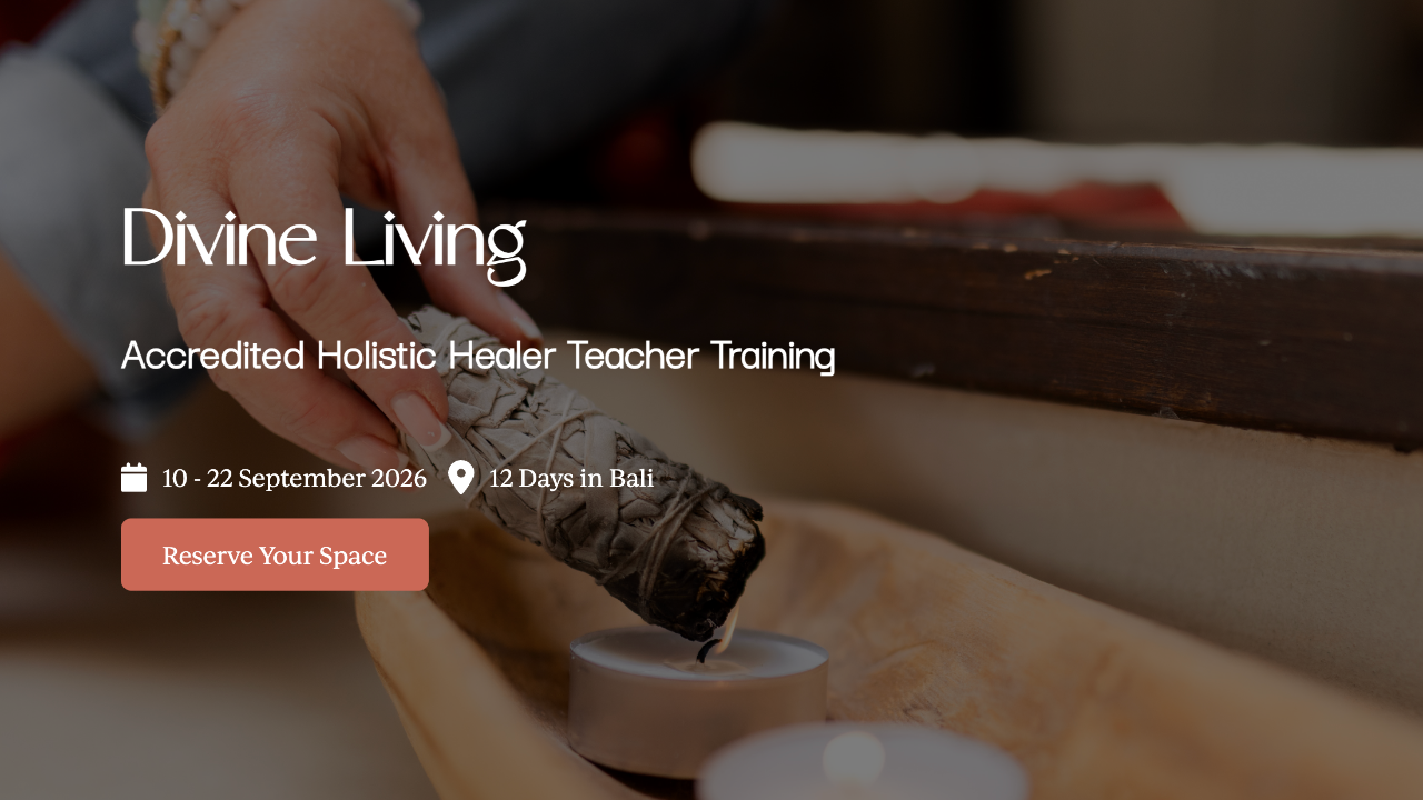 The Divine Living Teacher Training is a sacred initiation into the holistic healing path. Over 12 days in a luxury retreat setting in Bali, you’ll immerse in Eastern wisdom and learn how to translate these timeless teachings for the modern world.